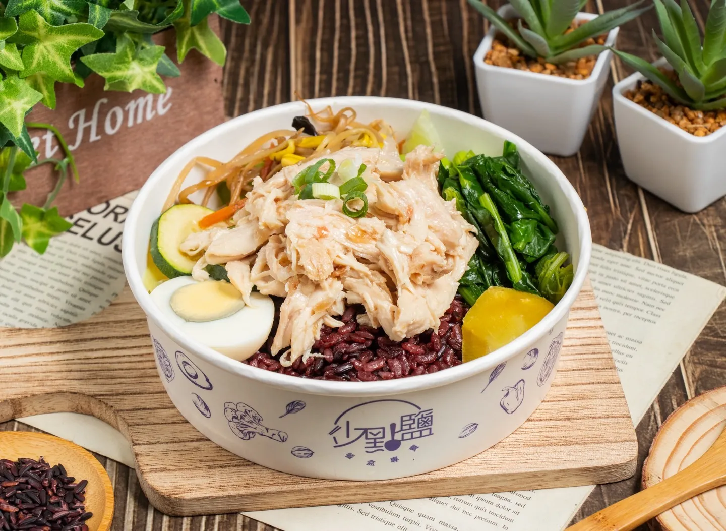 餐盒包含黑米飯、水煮蛋、地瓜,多種不同的肉品可挑選,每日更換4種配菜,讓營養更均衡到位。